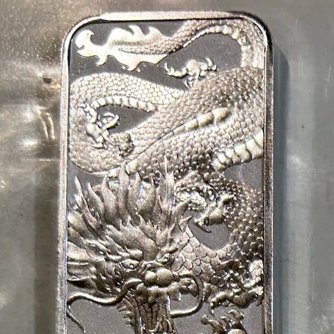den første i serie AUSTRALIA 1 OZ SØLV DRAGON COIN BAR