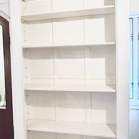 Tallerkenskap hylle i behandlet treverk, signert Sandvik.