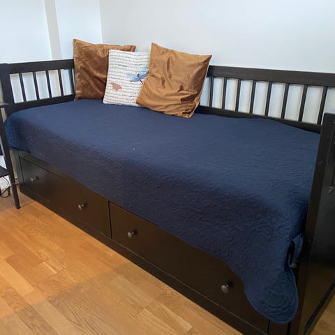 Enkeltseng fra Jysk med to skuffer under., lite brukt på gjesterom. Madrass og overmadrass følger med.