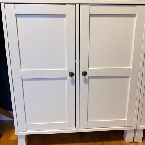 Pent brukt skap med glassdører selges. Skapet heter Skals og ble kjøpt på jysk. Nypris er kr.900 på Jysk.