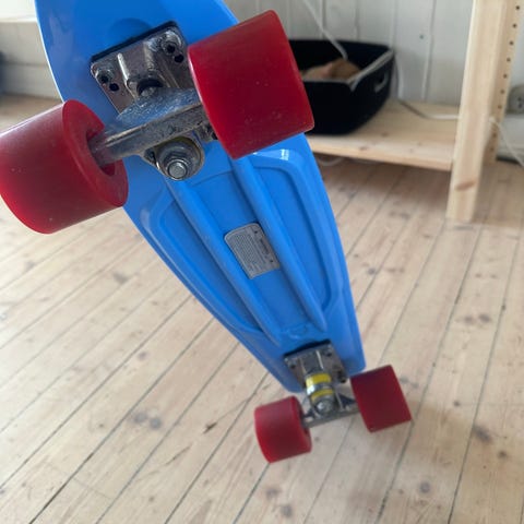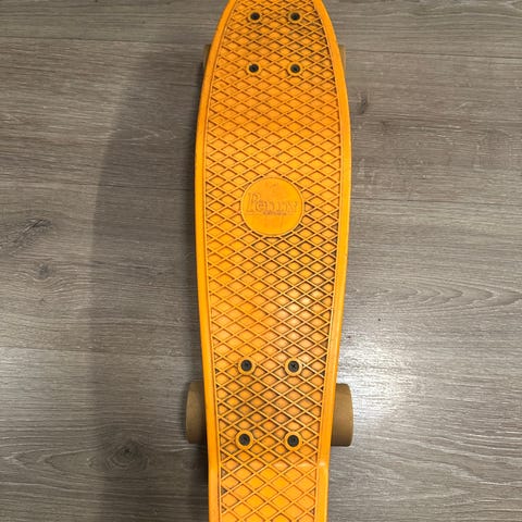 Penny Skateboards Cruiser Skateboard i Peach og mint hjul plast. Brettet har en kompakt størrelse med et mønstret overflate for bedre grep. Hjulene er mint, og truckene har en lilla og turkis fargekombinasjon. Egnet for cruising og bykjøring.