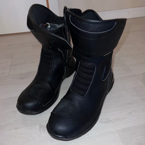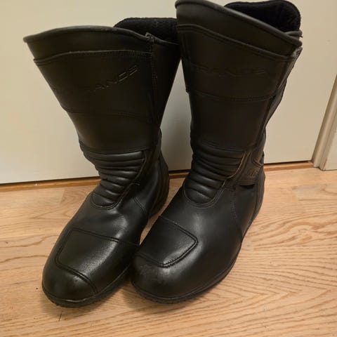 Falco motorsykkelstøvler i størrelse 42, svart farge. Disse har kun vært brukt på kjøring med kjøreskole, så er derfor i veldig god stand