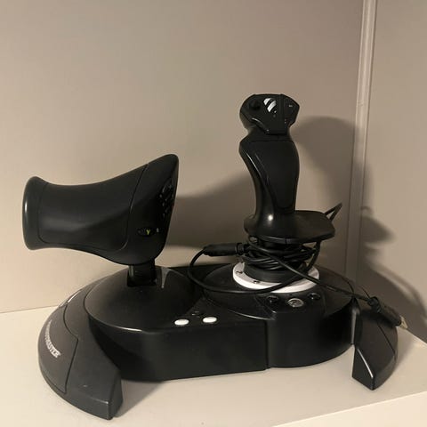 Thrustmaster T-Flight T.16000M FCS Hotas er en joystick og gassregulator designet for flysimulatorer. Enheten har flere knapper og kontroller for presis styring, og er utstyrt med USB-tilkobling. Joysticken har en ergonomisk utforming for venstre- eller høyrehendt bruk.