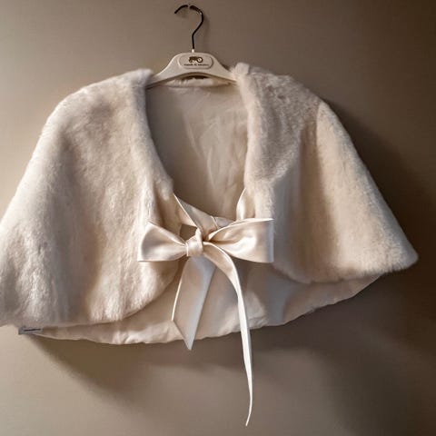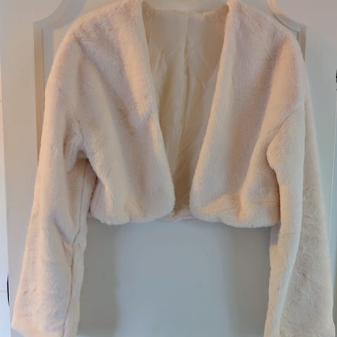 Ingen merkelapper på denne, str er ca S/M. Stoff er fuskepels i polyester. Veldig mykt og glatt stoff.