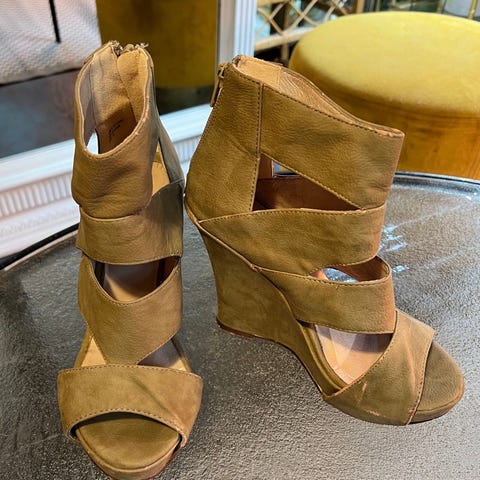 Hvite platåsandaler, syntetisk materiale. Ikke brukt.
