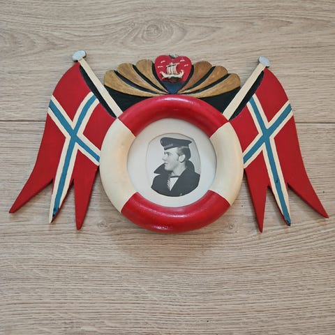 Dekorativ maritim veggplakett i tre med relieff av skip. Merket Iron Ship – Newark og Built 1849. Gir et klassisk og sjøfartsinspirert uttrykk, perfekt i gang, stue eller hytte.