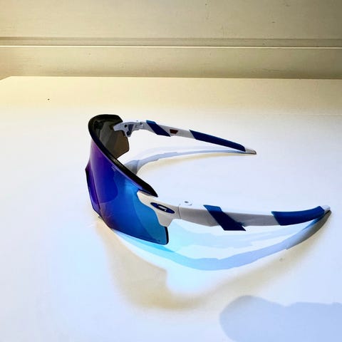 Oakley solbriller for unisex. Brillene har en firkantet form med hvit ramme og mørke glass. Inkluderer et hardt etui for oppbevaring.