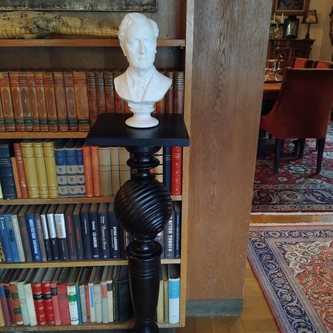 Elegant gulvlampe utformet som søyle med solid fot. Sort finish med detaljer i messing på toppen gir et tidløst og klassisk uttrykk. Passer perfekt i stue, gang eller bibliotek.