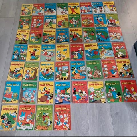 Donald Duck & Co. tegneseriehefter med ulike utgaver og historier. Samlingen inneholder flere blader med klassiske tegneserier og karakterer fra Donald Duck-universet. Passer for samlere og lesere av tegneserier. Usikker på verdi, 4 esker. HBO prisforlangende, bør hentes. For tungt til å sendes. 860stk. Selges kun samlett.
