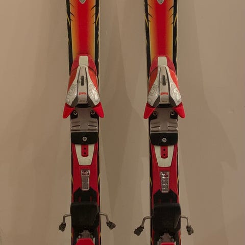 Fischer RC4 Race alpinski med tilhørende støvler i størrelse 23.5-24(str 36-37). Skiene er 110 cm lange og har bindinger for montering på støvlene. Støvlene er røde med grå detaljer og har spenner for justering og god passform.