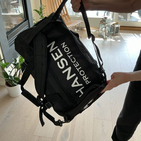 Helly Hansen bag laget i stoff, designet for unisex bruk. Vesken har flere rom og lommer, samt hjul og teleskophåndtak for enkel transport. Innvendig er vesken foret med rød fôr og har stropper for å sikre innholdet.