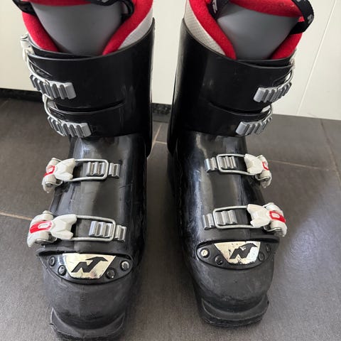 Head skistøvler i størrelse 24,0/24,5 med svart og hvit farge. Støvlene har flere spenner for justering og er laget for alpinski. Brukt kun noen få ganger.