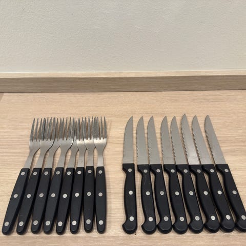 Godt biffbestikk selges. Mangler to kniver, derfor rimelig pris. Kan sendes mot kjøpers kost.