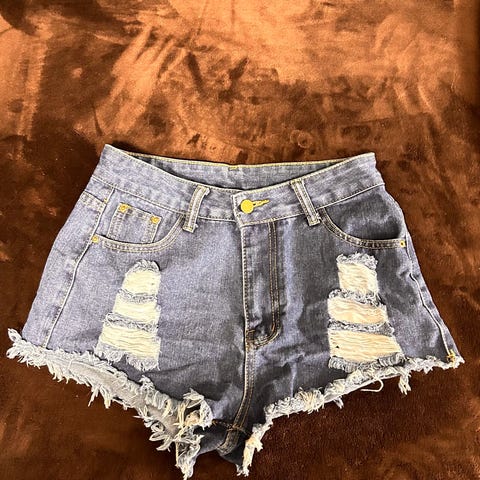 jeans i blå denim for kvinner. Størrelse 32 med midje vidde W38. Jeansene har klassisk design med lommer og knappelukking, egnet for hverdagsbruk.
