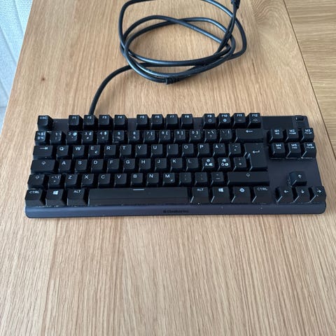 Steelseries Apex350 tastatur med USB-kabel i svart farge. Tastaturet har standard layout og kablet tilkobling via USB.