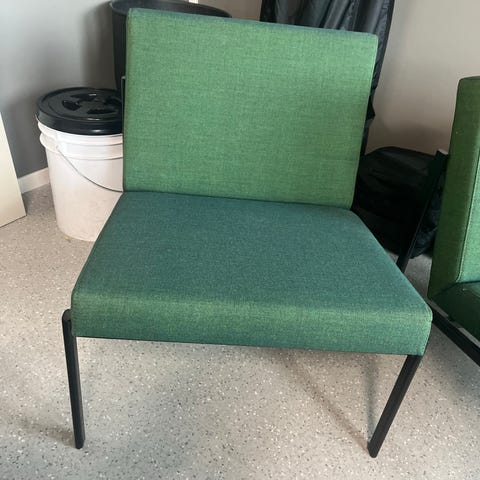 Artek Ilmari Tapiovaara stol med svart stofftrekk og metallramme. Noen små hull i setet, fungerer fint som den er, men et nytt trekk hadde også vært fint.