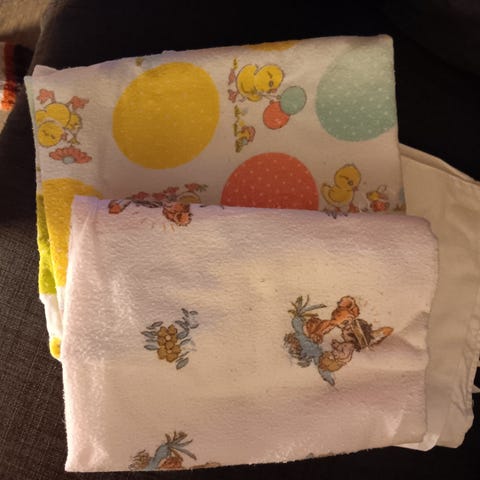 Tre brukte trekk til stellematte selges samlet. Det ene er godt brukt og litt misfarget i vask.