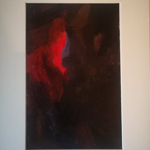Abstrakt bilde, olje på papir, selges med passepartout. Kunstner er Viktoria Jensen Tsyrlinskaya, mål er 30x40 cm