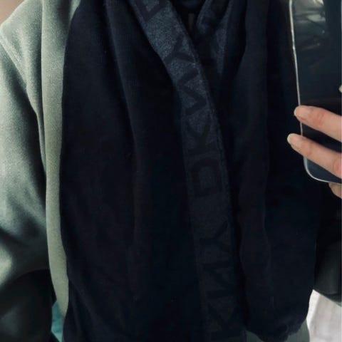 DKNY slips i rød farge med hvite diagonale striper.