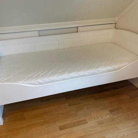 Seng med 4 skuffer, (2 store skuffer, 2 små skuffer) til oppbevaring.