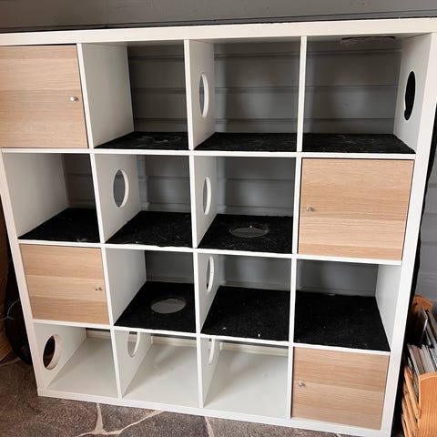 Katt kloremøbel i beige med sisal. Inneholder plattformer og hule for hvile, samt flere klorestolper dekket med sisal tau. Passer for katter som trenger aktivitet og hvileplass.