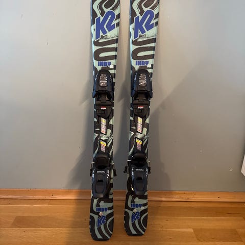 K2 Indy alpinski med en lengde på 88 cm. Skiene er med bindinger .Brukt ,men fortsatt mye bruk igjen. Selges som den er.