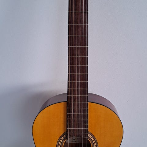 Morgan akustisk gitar. Klassisk design med trestruktur og nylonstrenger. Egnet for akustisk musikk og øving. Perfekt for nybegynnere. Ny pris ligger på kr 1 895,-
