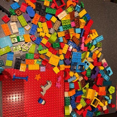 Veldig fine klosser med tallene 1-10 med tilhørende symboler, bokstavene, og seks klosser med frukt.