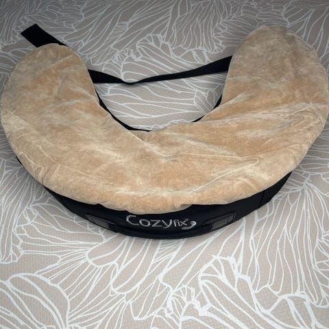 «CozyFix ammepute er utviklet for å skape en rolig og harmonisk ammestund for deg og barnet ditt. CozyFix gjør det lettere for deg å finne en god ammeposisjon, den gir god støtte for armene dine og lar barnet ditt ligge nærme brystet – noe som reduserer faren for såre brystvorter. Med det praktiske midjebeltet fester du raskt puten inntil deg, slik at du unngår at barnet ditt sklir ned mellom deg og puten. Puten har et ekstra rom for oppbevaring av bleier, smokker, våtservietter, salver m.m.