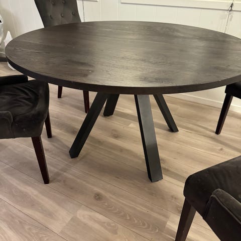 Nydelig og solid bord selges svært billig. Vi har ikke lenger plass, så det må bort. Bordet er satt sammen av plate og understell fra to ulike bord. Pusset og malt. Platen er lakket. Det følger med en ileggsplate. Bordet er demontert og klar til å hentes på Dimna.