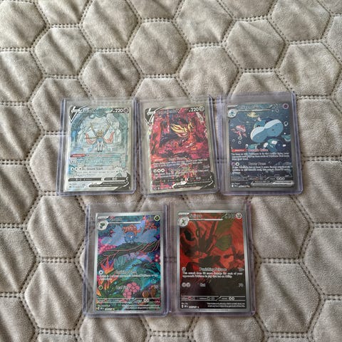 Selger nostalgiske Pokemonkort fra 1999-2000 tallet. Alle kortene er holo / glins. Se bilder. 75 kr per kort. Fint å fylle permen med. Alle kortene er godt brukt og har stor slitasje (se bilder). Kan sende trygt med posten.