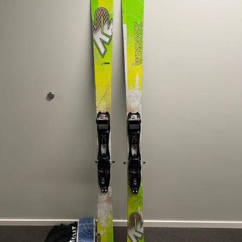4frnt KYE 120 alpinski med lengde på 189 cm. Skiene har målene 138-123-133 og svingradius på 27 meter. Pudderski. Montert til sålelengde 306mm, som tilsvarer 26/26.5, men mye justeringsmulighet