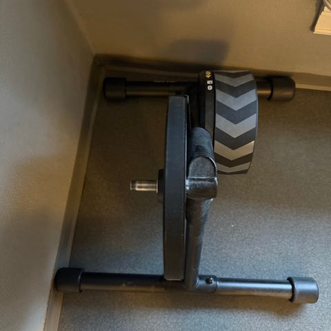 Svart farge, designet for innendørs sykkeltrening. Kompatibel med ulike sykkelmodeller. Medfølger iPadholder til å montere på styret, og fremhjulsstøtte.