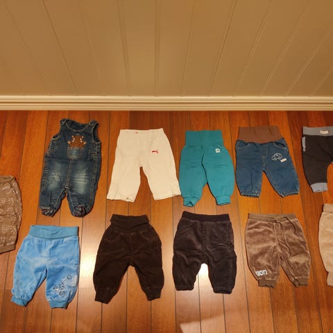 Selger fin klespakke i størrelse 62–68 cm. Inneholder ulike plagg i god brukt stand