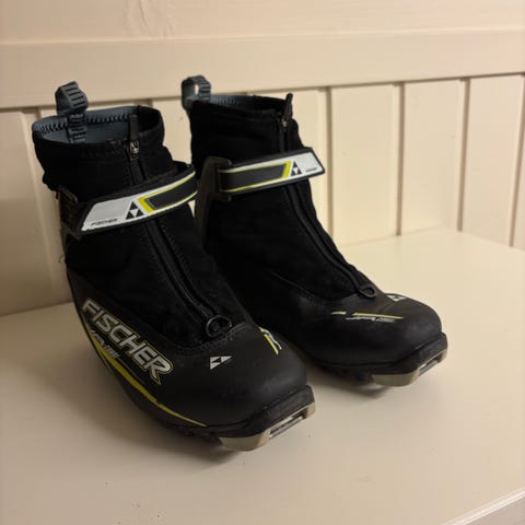 Fischer Jr Combi kombinert langrennsko i størrelse 37. Skoene er svarte med gule og hvite detaljer. Fine!