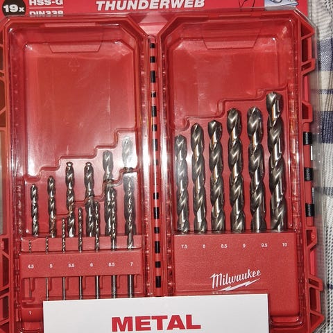 Milwaukee oppbevaringsbokser til verktøy. Settet består av flere stablebare kasser med håndtak for enkel transport og oppbevaring av verktøy og tilbehør.