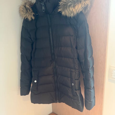 Pent brukt vinterparkas for dame fra Helly Hansen selges. Vinterjakken har hette med pels, og den er veldig varm siden den er foret med andedun og andefjær. Vinterjakken har en fin form med litt innsving i midjen, størrelsen er dermed en liten large/stor medium. Vinterjakken er kun brukt en kort periode og selges fordi den ikke passer lenger etter graviditet.