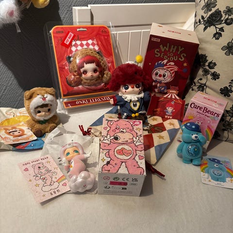 Spør om du lurer på noe. De fleste har med original pose og kort. Noen få er uten.