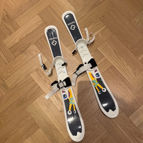 Sandkids Barne- og ungdomsski i blå og hvit farge med integrerte bindinger. Egnet for småbarn. Til å spenne på vanlige sko. Sendes ikke, så må hentes