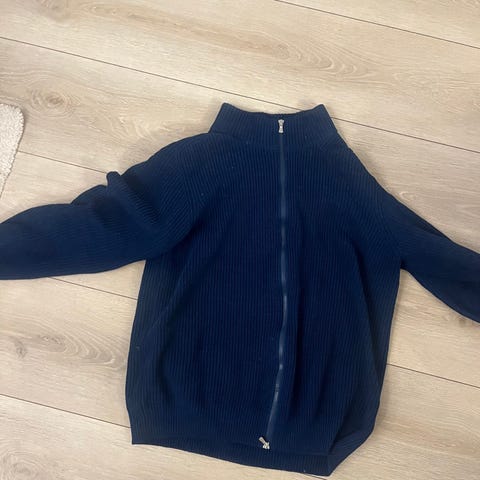 Usynlig brukt navy Gran sasso cardigan. Dobbel glidlås noe som er veldig fint. Den Passer L og noen M, spørs litt på kroppsfasong. Nypris: 4800kr, tror jeg skal ha kvitering om det er ønskelig. Kjøpte den i høst og er lite brukt.