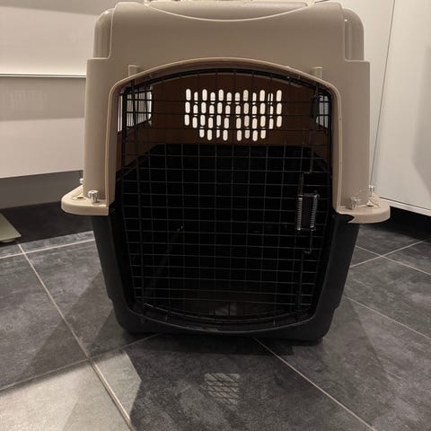 Schmidt Box spesialbestilt til Audi e-tron, men passer andre biler. 98x60x65 (lxbxh). I e-tron er det laget slik at ma legge ned venstre baksete og laste i full lengde uten å ta ut buret.