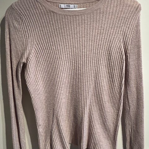 Mango genser i størrelse M. Den har ribbestrikket mønster og rund hals.