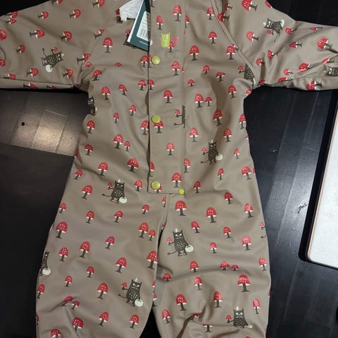 Kattnakken barneheldress laget i ull. Fargen er grønn, og størrelsen er 80. Passer for både gutter og jenter (unisex). Dressen har glidelås foran og forsterkede områder på knær og albuer.