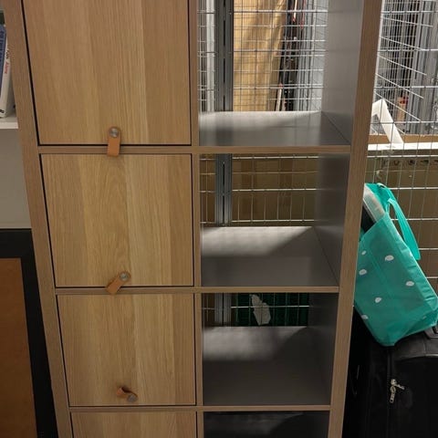 Praktisk og stilren Billy-bokhylle med dører som skjuler skapdelen, kombinert med åpne hyller med glass på øvre del. Gir et ryddig uttrykk samtidig som du kan vise frem bøker, pynt eller dekor. Passer like godt i stue, kontor eller gang.