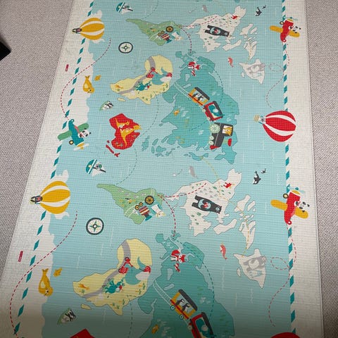 IKEA barne- og lekematte med motiv av bylandskap og veier. Passer til bruk på gulv som underlag for lek og aktiviteter for barn.