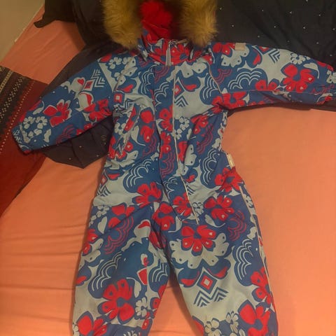 Pent brukt vinterdress fra Reima selges i str 92. Originale fotstrikker intakte.