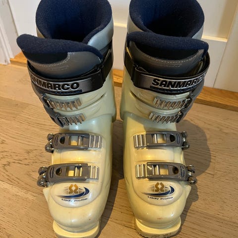 Head alpinstøvler selges. Støvlene har svart, hvit og blå farge, med tre justerbare spenner for tilpasning. Størrelse 230-235, som tilsvarer skostørrelse 36/37.
