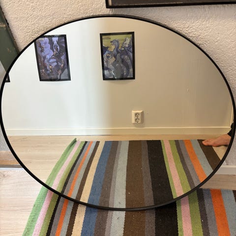Speil Ø110cm. Sort metallramme. Nypris 1600kr