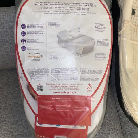 Barneseng i kokong med bue og hengende leker med myggnett
