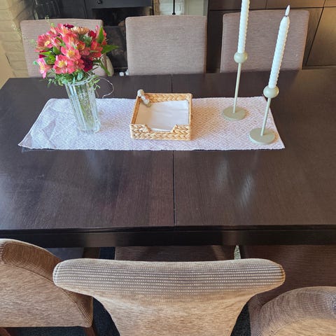 Pent brukt 6 tidløse spisestoler i kunstskinn. Kjøper henter selv.